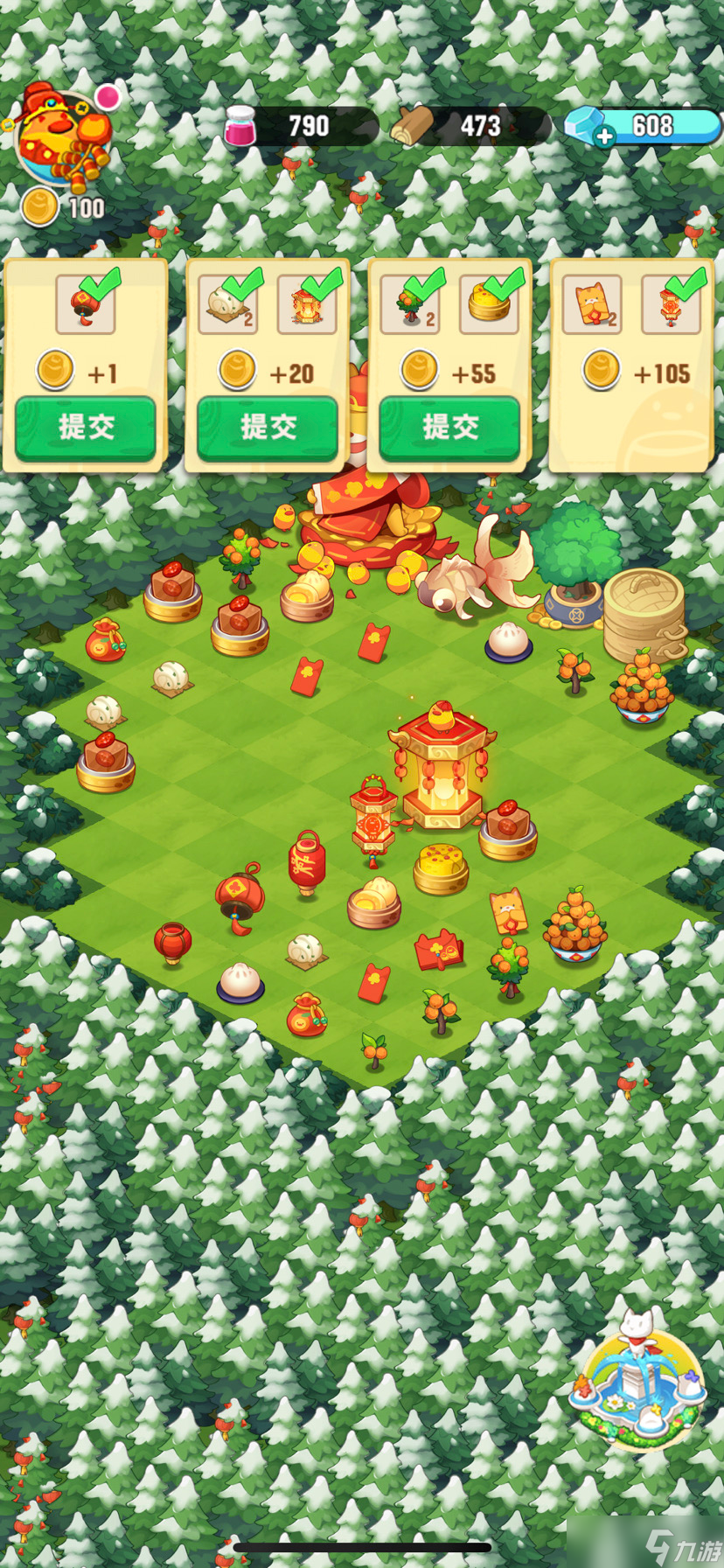 3、点亮全部地图后满级灯笼就可以喂给任务栏了,之后就是注意按照生产时间收取四种产出物品,合成提交给任务栏即可。产出物品按等级排列如图所示。