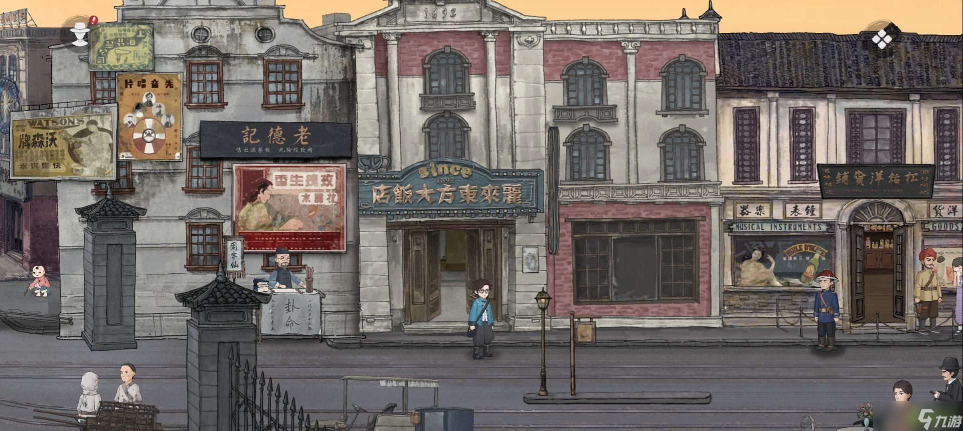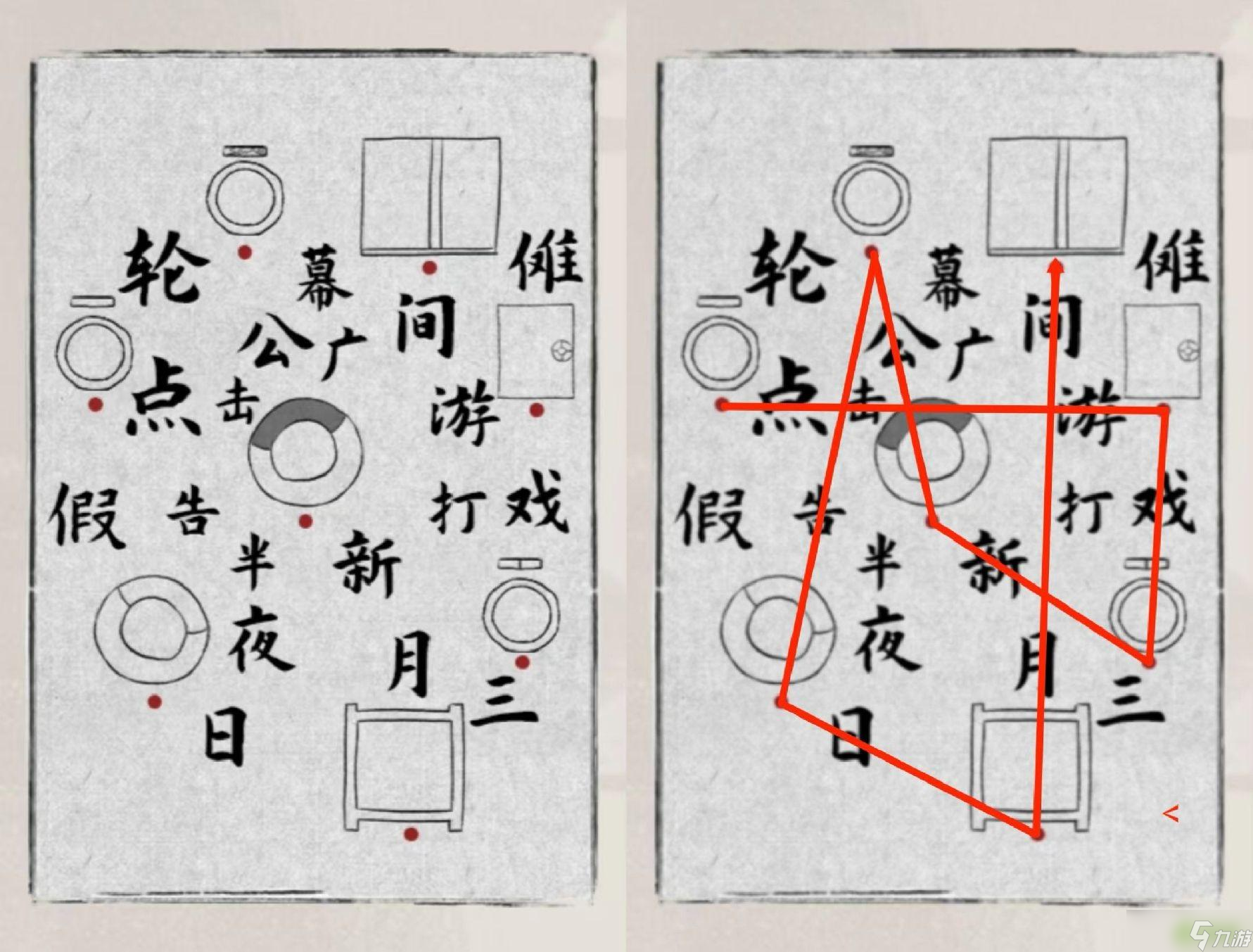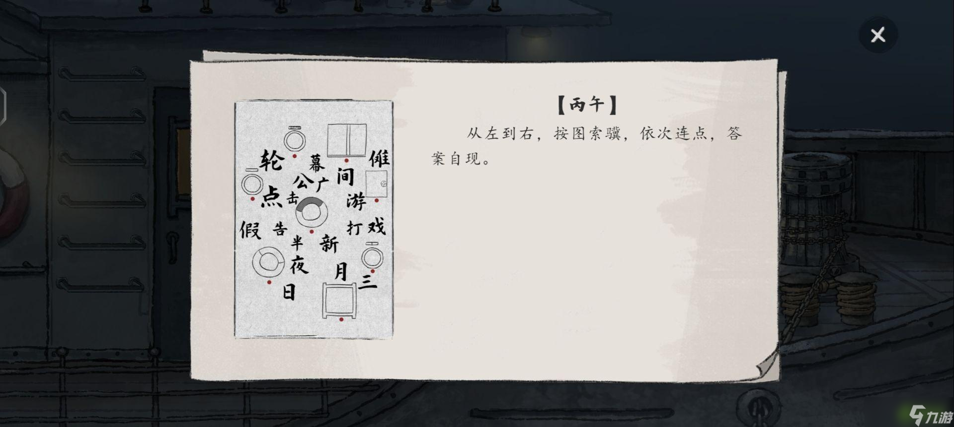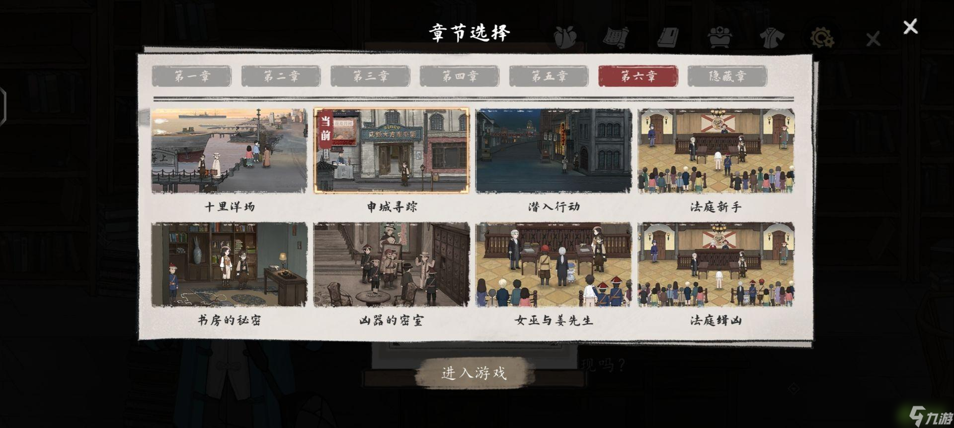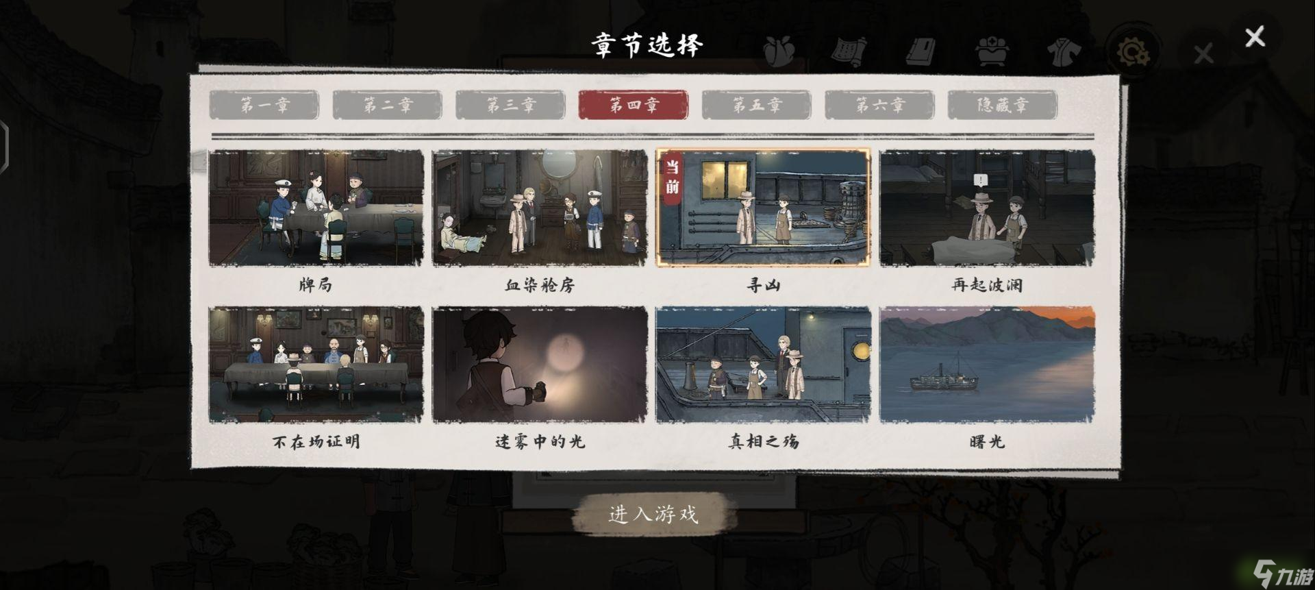 滑动章节选择页面 寻找可以拼合页面底纹的几个场景 观察箭头指出的答案